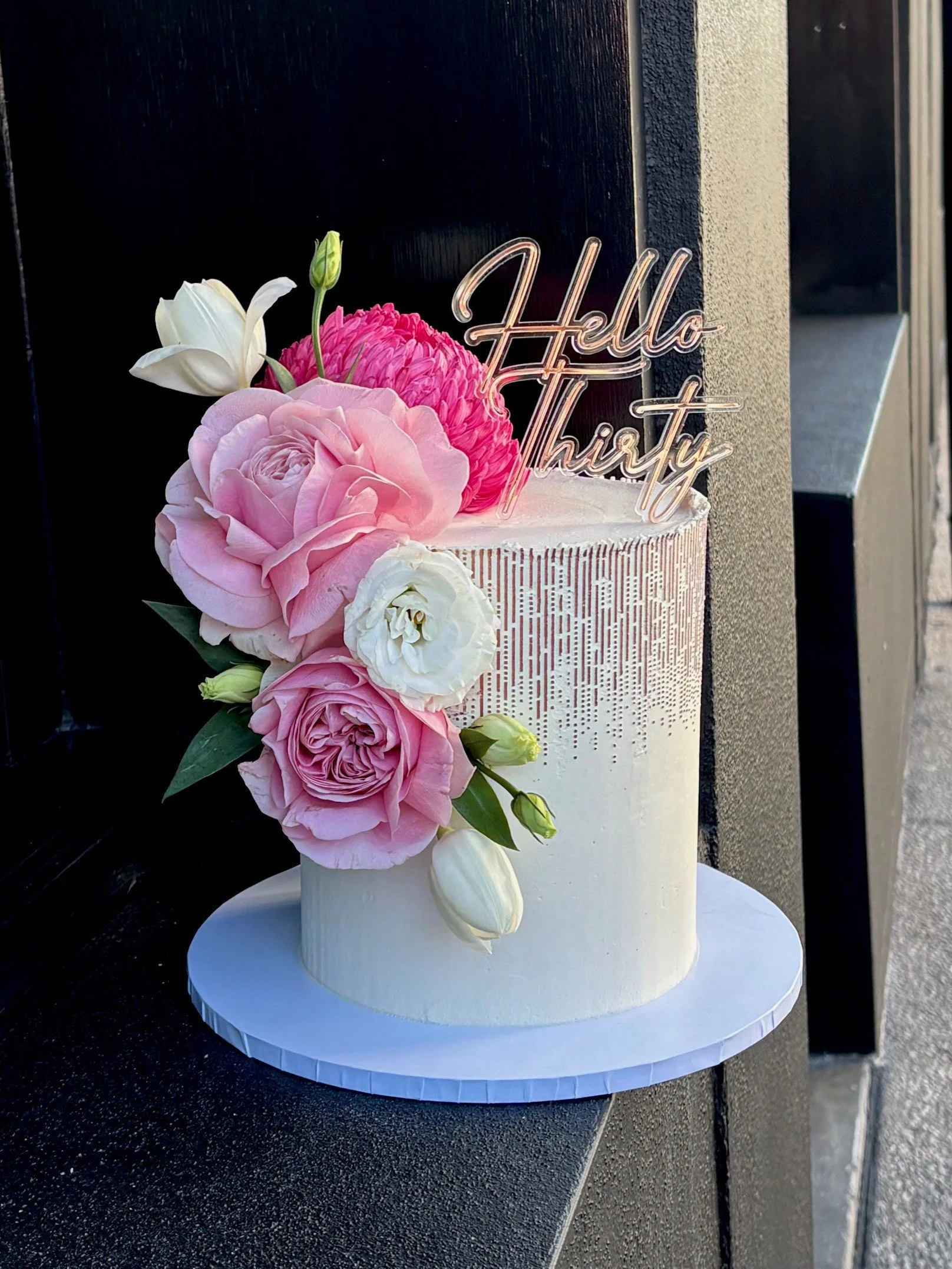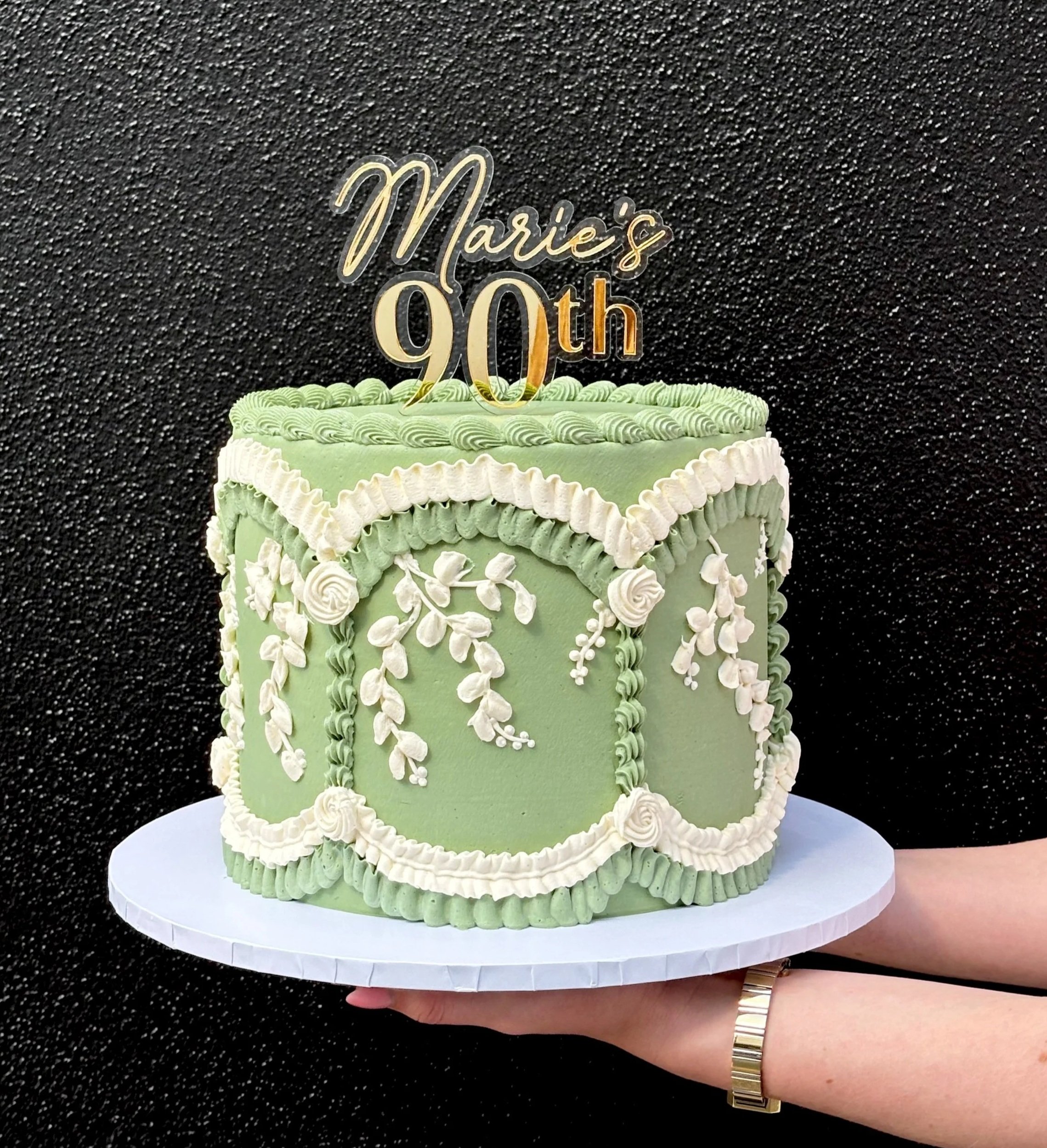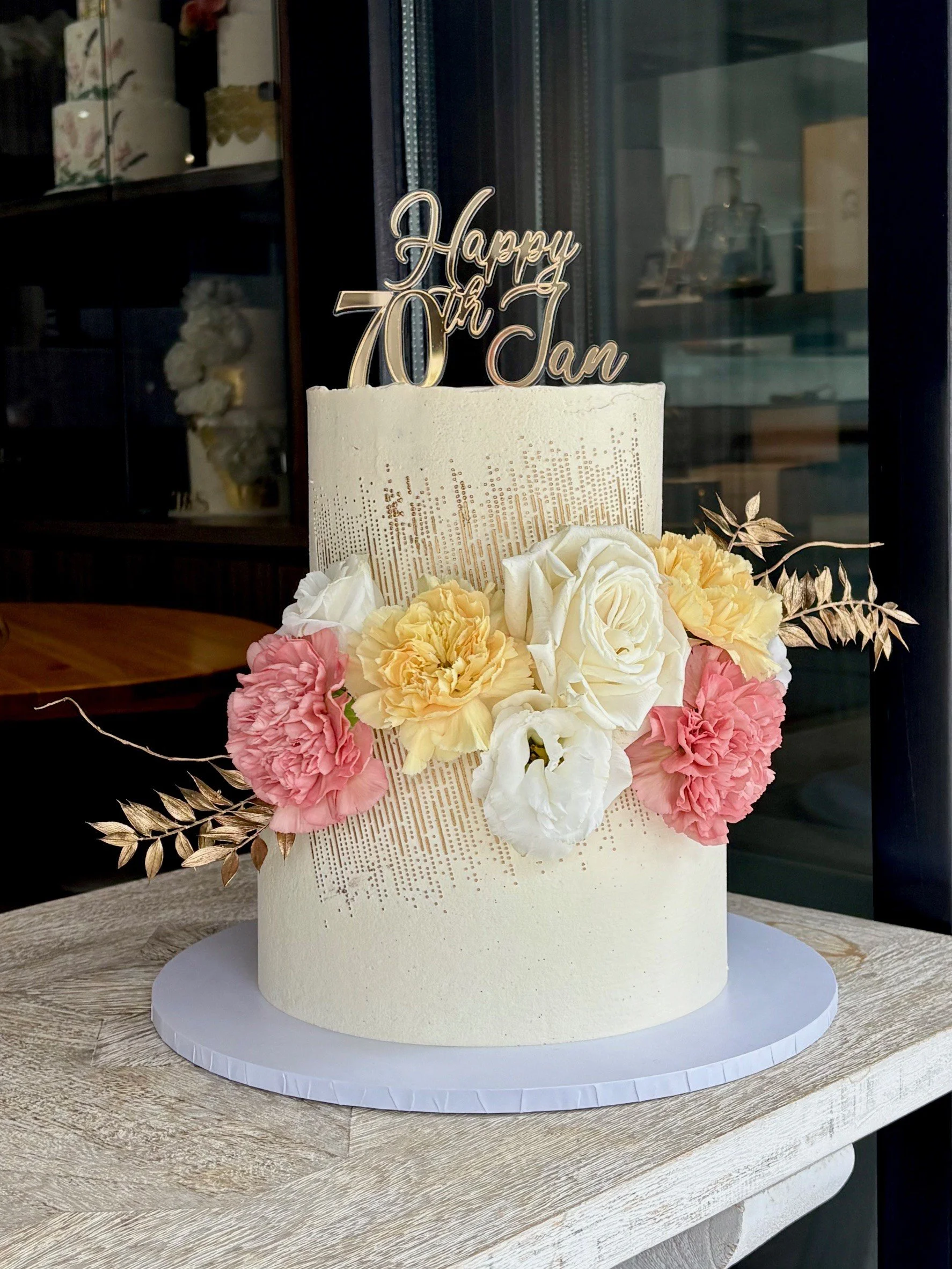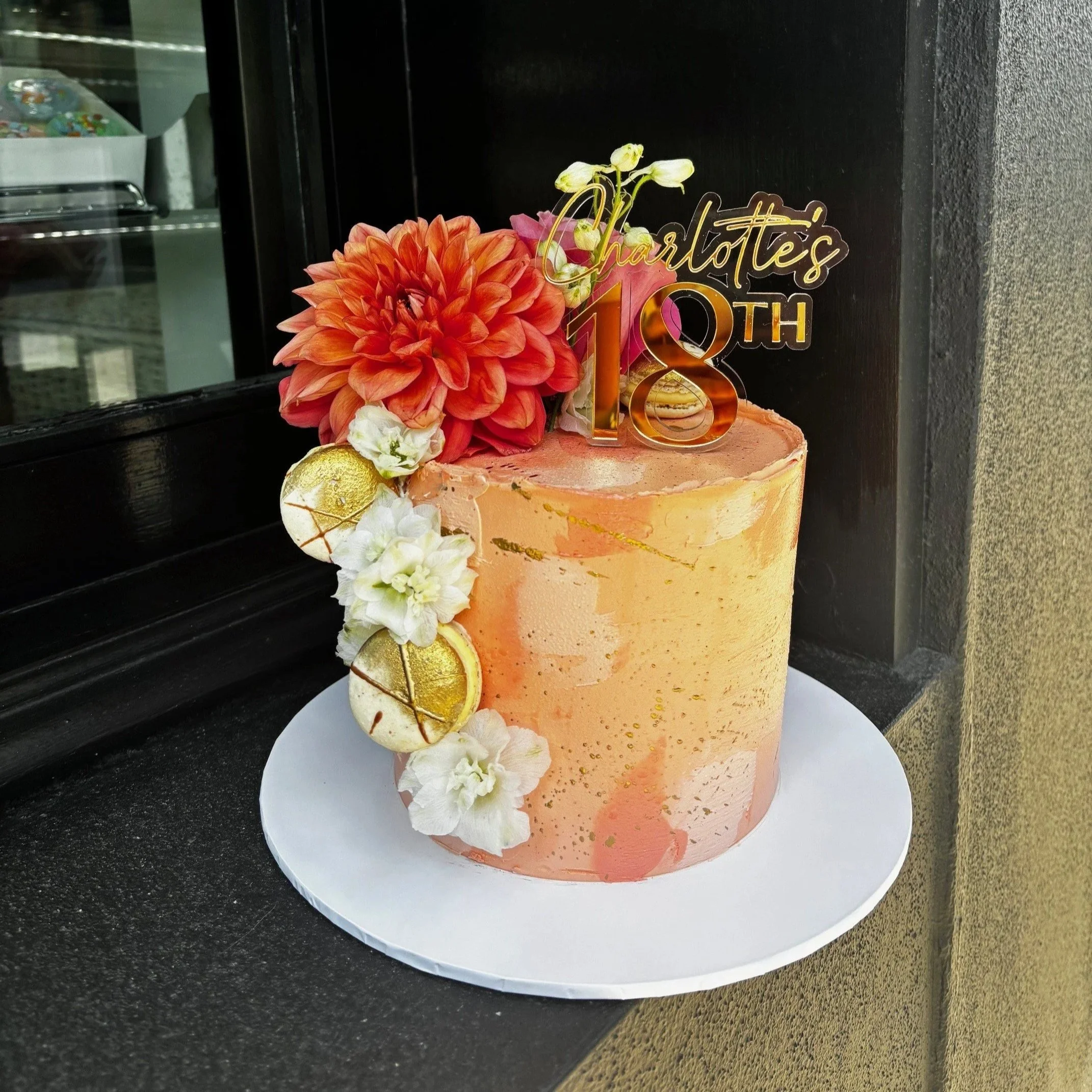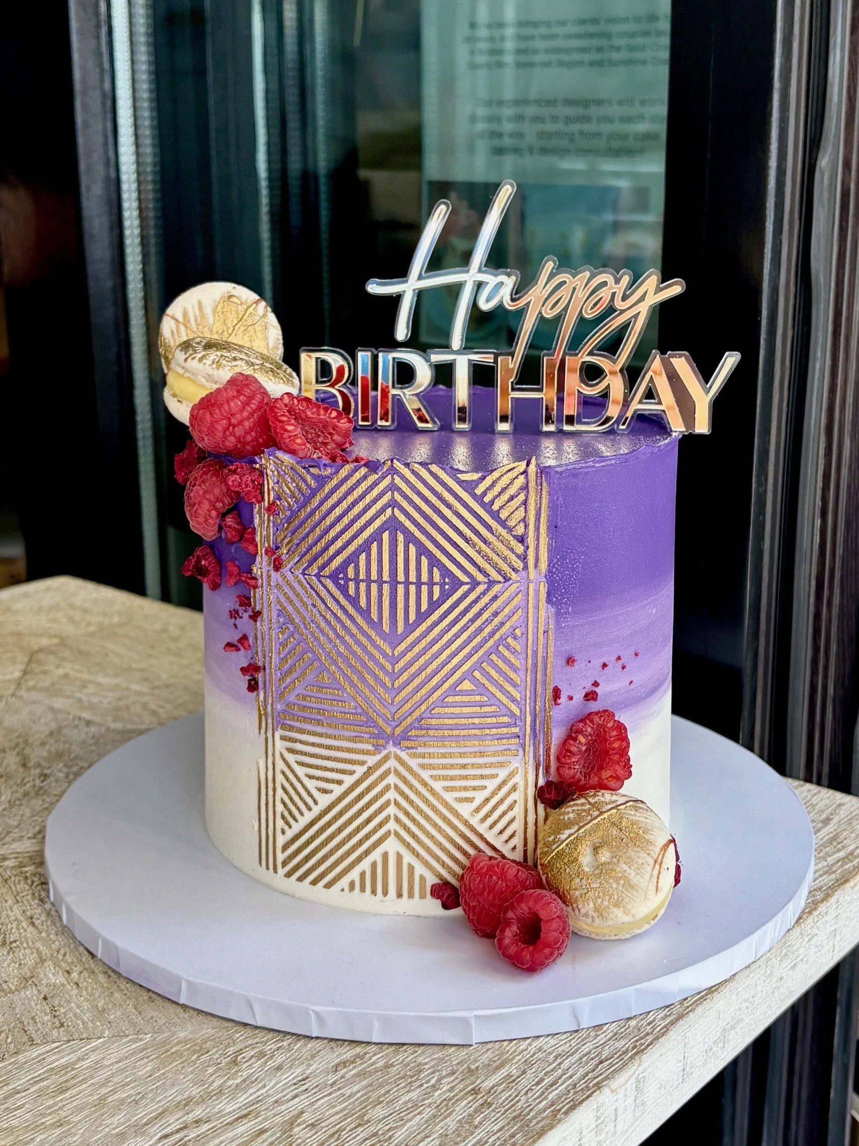 Our bespoke cakes come finished in a luscious vanilla bean buttercream. For larger tiered cakes, we add a cake cutting guide to ensure you or your venue know how many serves to cut your master piece in to. Buttercream cakes can be displayed for up to 2 hours in winter, a little less in summer. We offer gluten free cakes that taste just as delicious and all our birthday cakes come with complimentary candles.